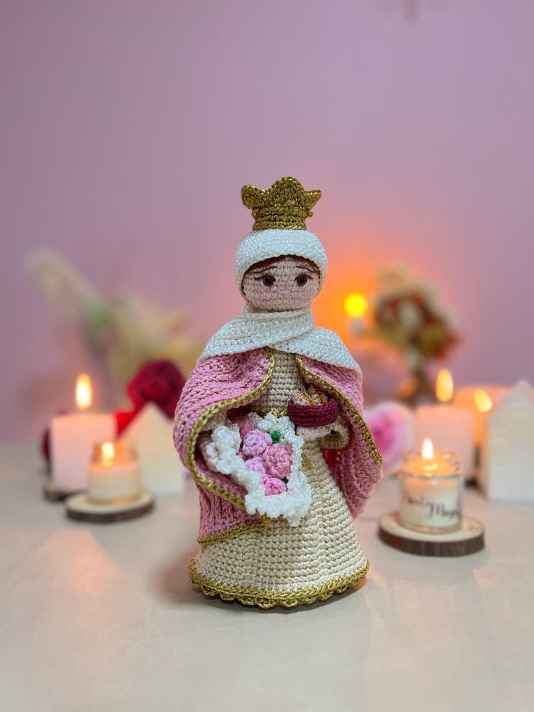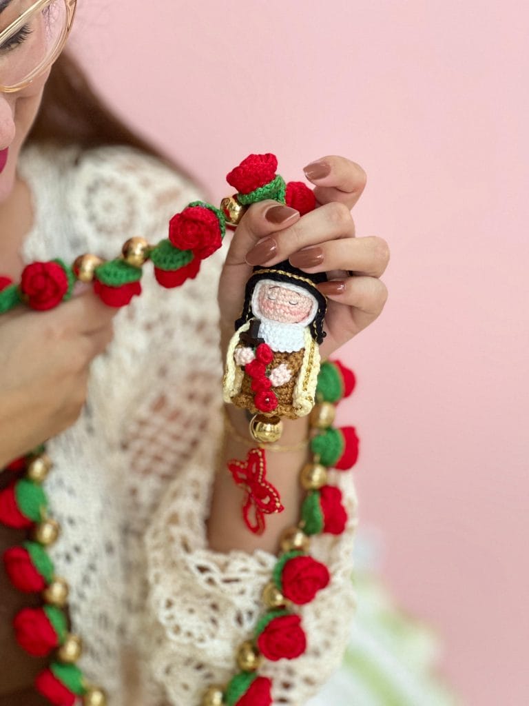 Cheiro de Rosas é o meu novo curso 100% online onde eu, Paula, vou te guiar passo a passo na confecção de três santinhas exclusivas em amigurumi. Cada ponto, cada detalhe, é pensado para te aproximar da fé enquanto desenvolve uma peça linda, cheia de significado — seja para você, para presentear, ou até mesmo para vender.