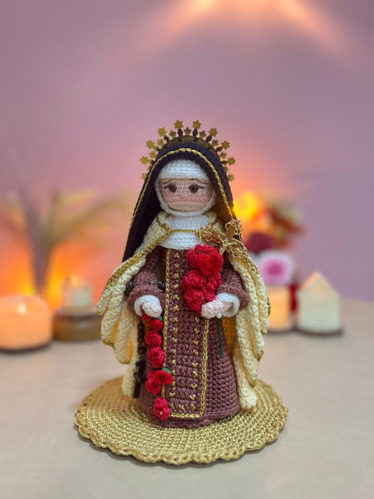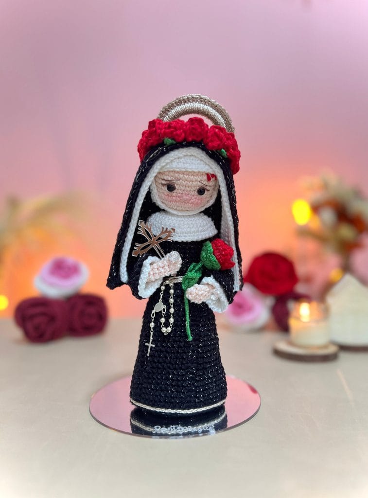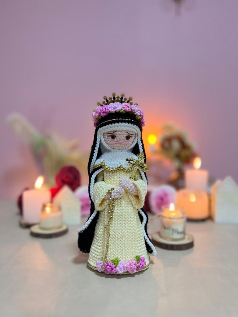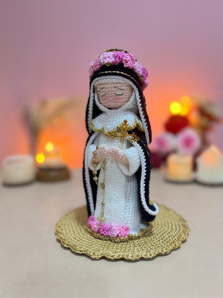 Descubra como criar rostinhos expressivos, véus, mantos e acessórios que trazem vida e emoção às representações de Santa Teresinha, Santa Rita de Cássia e Santa Rosa de Lima.