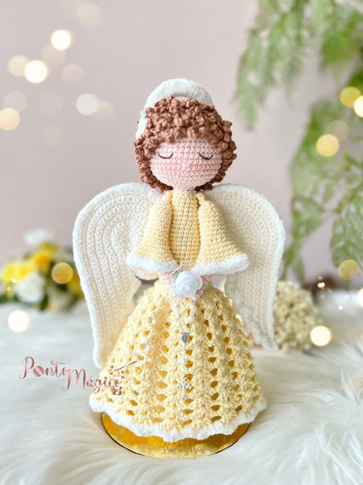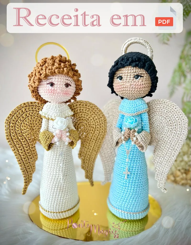 No PDF você irá aprender: corpo, cabeça (2 opções), asas, cabelo com tranças, braços e mangas, saia.